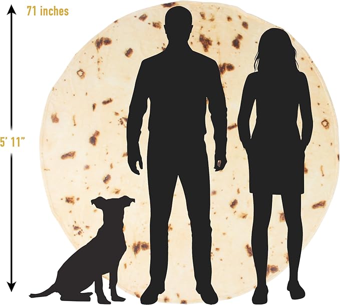 Zulay Extra Large Burritos Tortilla Throw Blanket – Wrap Yourself Like a Giant Taco! Double-Sided 71 Inches, Funny & Ultra Cozy Novelty Blanket, Super Soft 285 GSM Flannel