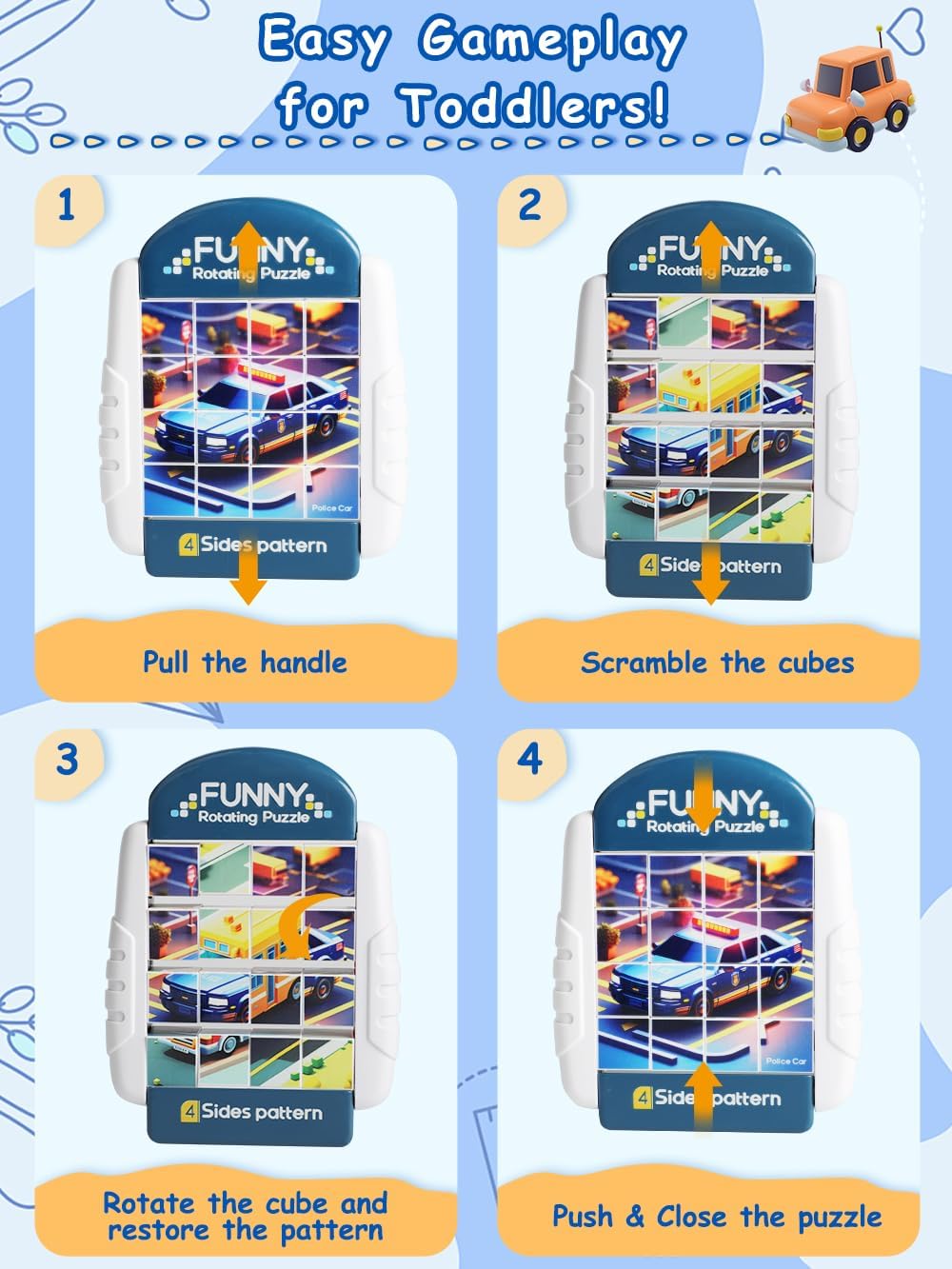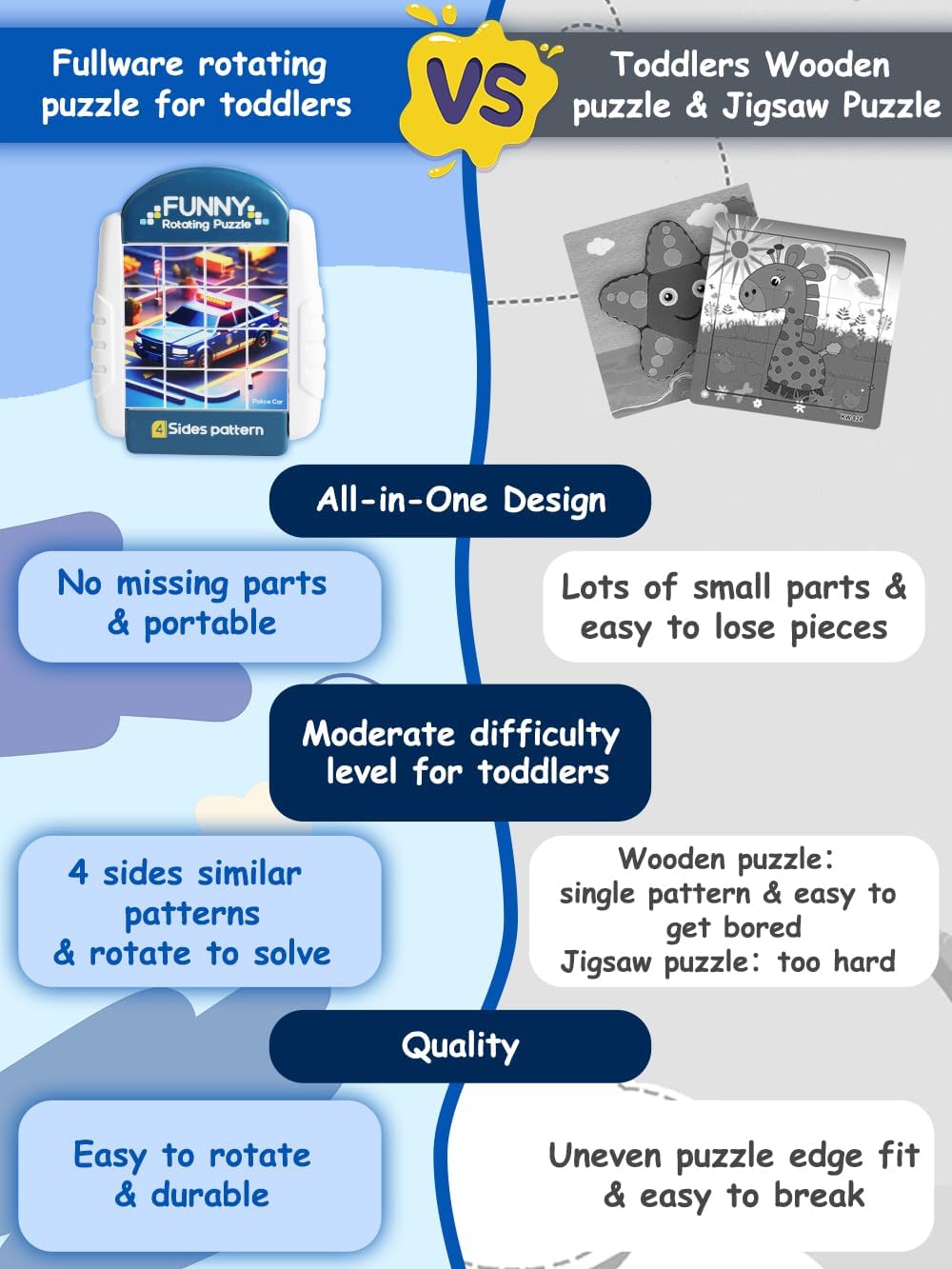 - A HANDY TOY FOR OUTINGS - Whether in the car or at a restaurant, our compact Rotating Puzzles can be carried along and keep children quiet and occupied. Moreover, there is no risk of missing pieces after playing with this all-in-one design puzzle!