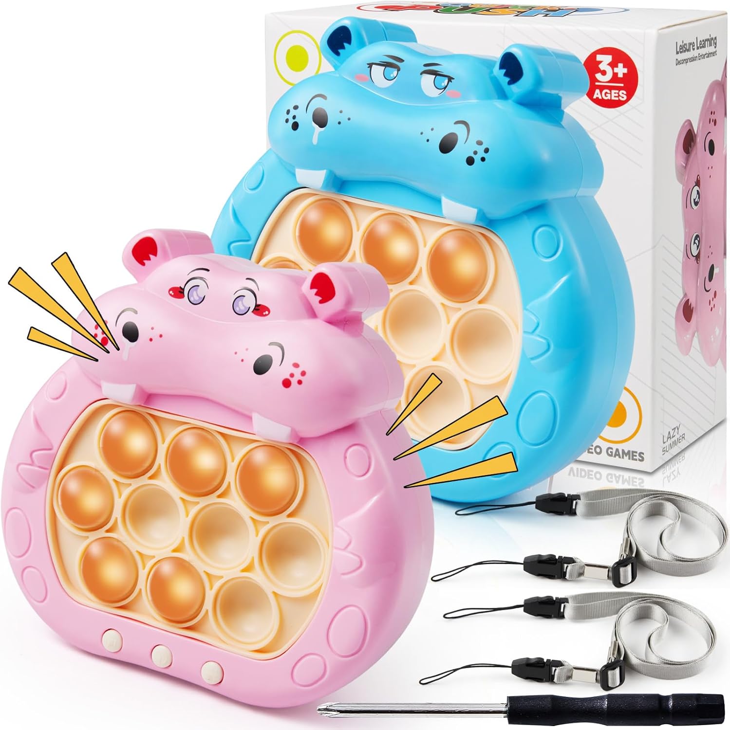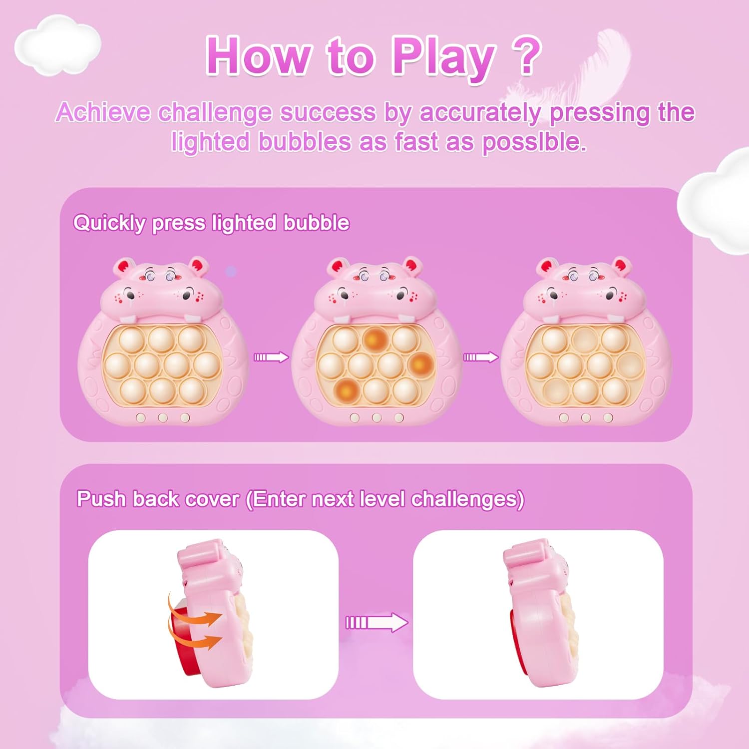 - 【Push Game Toys】 Our fidget games toy filled with sparkling lights and dynamic music, making it an entertaining sensory experience, easy to play. Perfect for releasing your child's stress and enhancing sensory stimulation. The different modes also allow multiple players to play together for added interactive fun.