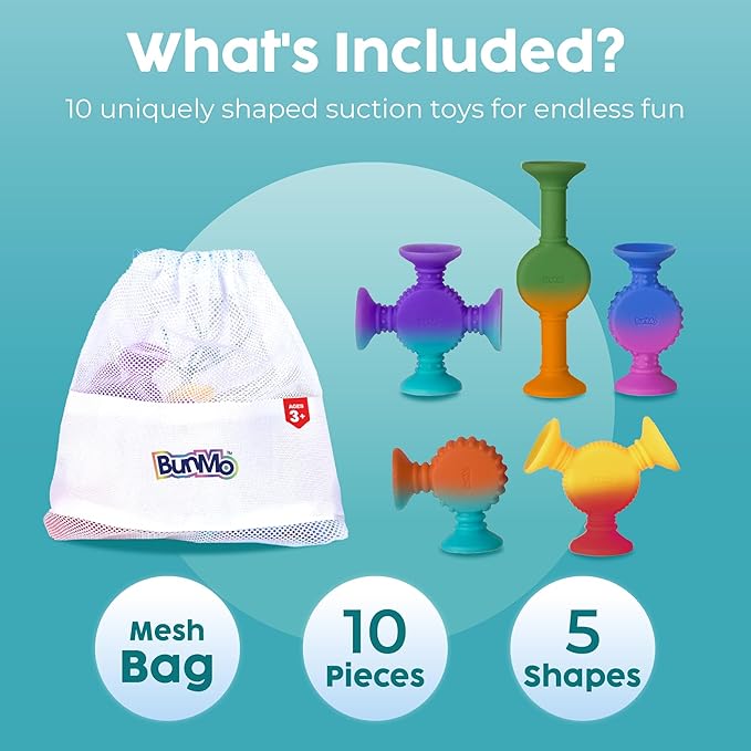 - Endless Ways to Play - Stick them to smooth surfaces like bathtubs, tiles, and glass to build, connect, and create! These interactive suction cup toys encourage imaginative hands-on play while making bath time fun!