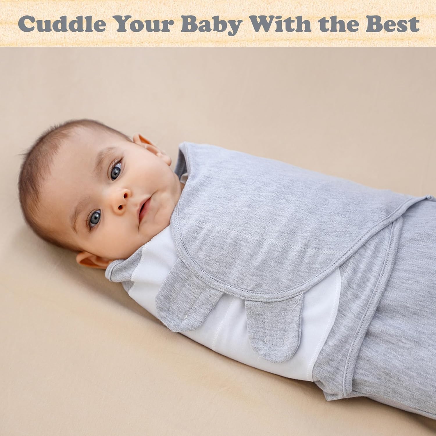 - Adjustable Design for All Stages: These infant swaddles 0-3 months grow with your baby, providing a snug, customizable fit. The swaddle wrap features an easy hook-and-loop design for hassle-free adjustments. It allows a seamless transition from arms-in to arms-out sleeping, ensuring security and comfort at every stage.