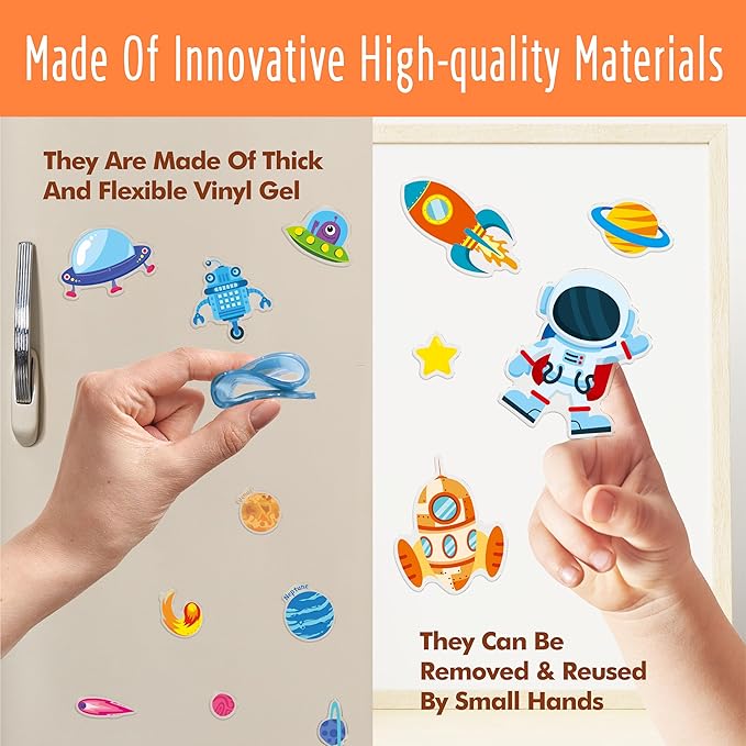 - Value Pack: It comes with 40 gel cling stickers in different designs, providing various choices for you to decorate your place. It covers various space elements, such as rocket, planets, astronaut, stars, aliens, and more, making them a great way to teach your children about the wonders of space.