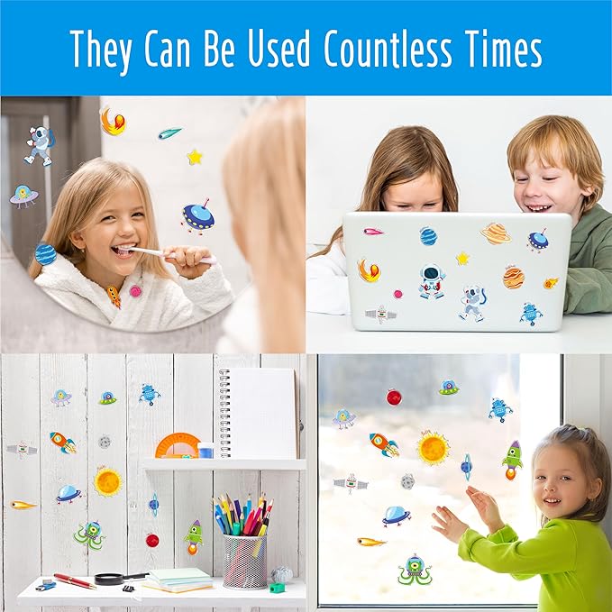 - Wide Usages: It is very suitable for windows, refrigerators, glasses, water bottles, etc. A wonderful gift for people of all ages, and perfect for birthdays, holidays, or any special occasion. These stickers can also be used to teach children about vast universe, making them a fun and interactive learning tool.
