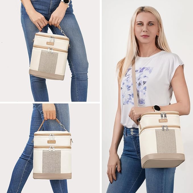 - Double Layer Design: Measuring 8.66 x 7.08 x 11 inches, the breastmilk cooler bag features a smart double-layer design, allowing you to store up to 6 baby bottles (up to 9 oz) and a wearable breast pump or snacks. Mancro bottle bag can be used as both a breastmilk cooler bag and a lunch bag, ensuring your essentials are organized and accessible.