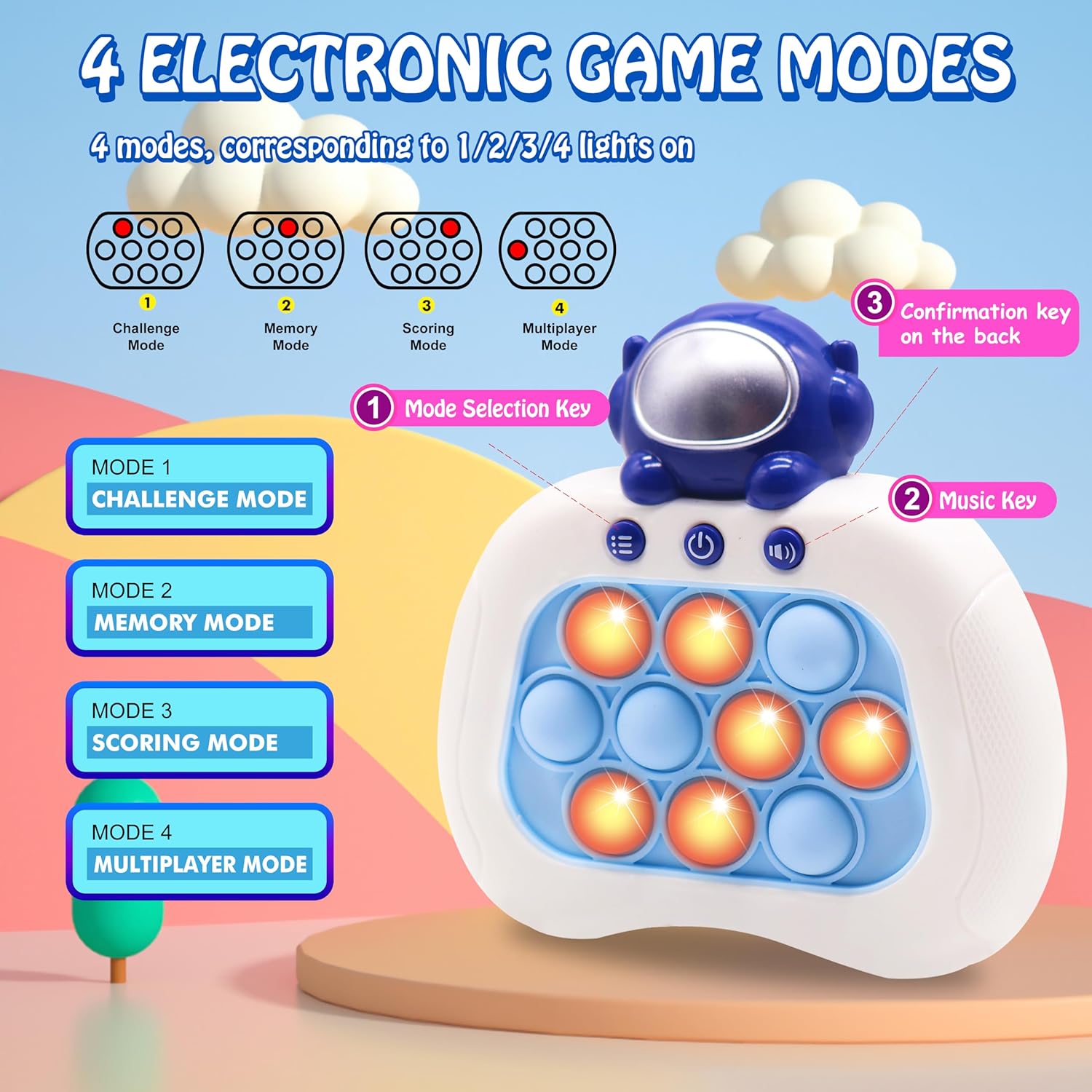 Quick Push Bubble Game,Popping Game Light up Pop Fidget Toy for Kids,Fast Push Console Game for Ages 3-12 for Boys and Girls,Handheld Puzzle Game Sensory Toys (Astronaut)