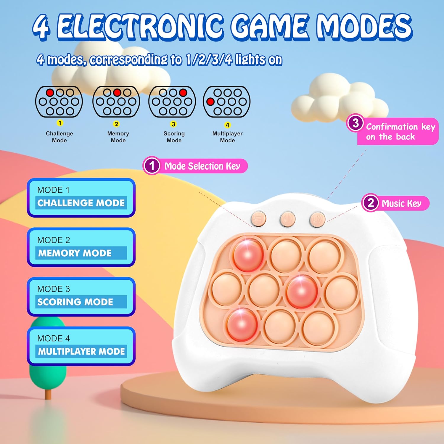 Quick Push Bubble Game,Popping Game Light up Pop Fidget Toy for Kids,Fast Push Console Game for Ages 3-12 for Boys and Girls,Handheld Puzzle Game Sensory Toys (White Universal)