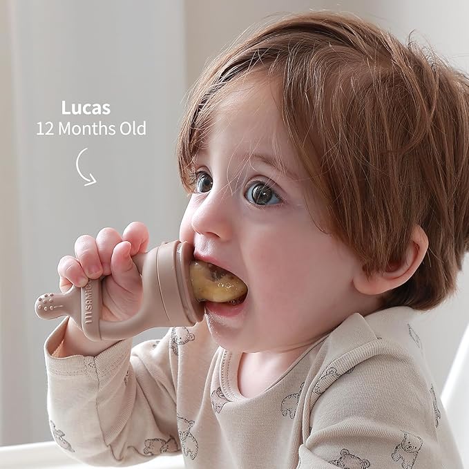 - Brighten up Teething Time - Our food feeder is super easy for babies to hold/chew and for parents to open/close like a breeze. The soft pouch only allows small pieces to pass through, and the teething part beautifully resembles a pacifier for soothing sore gums.