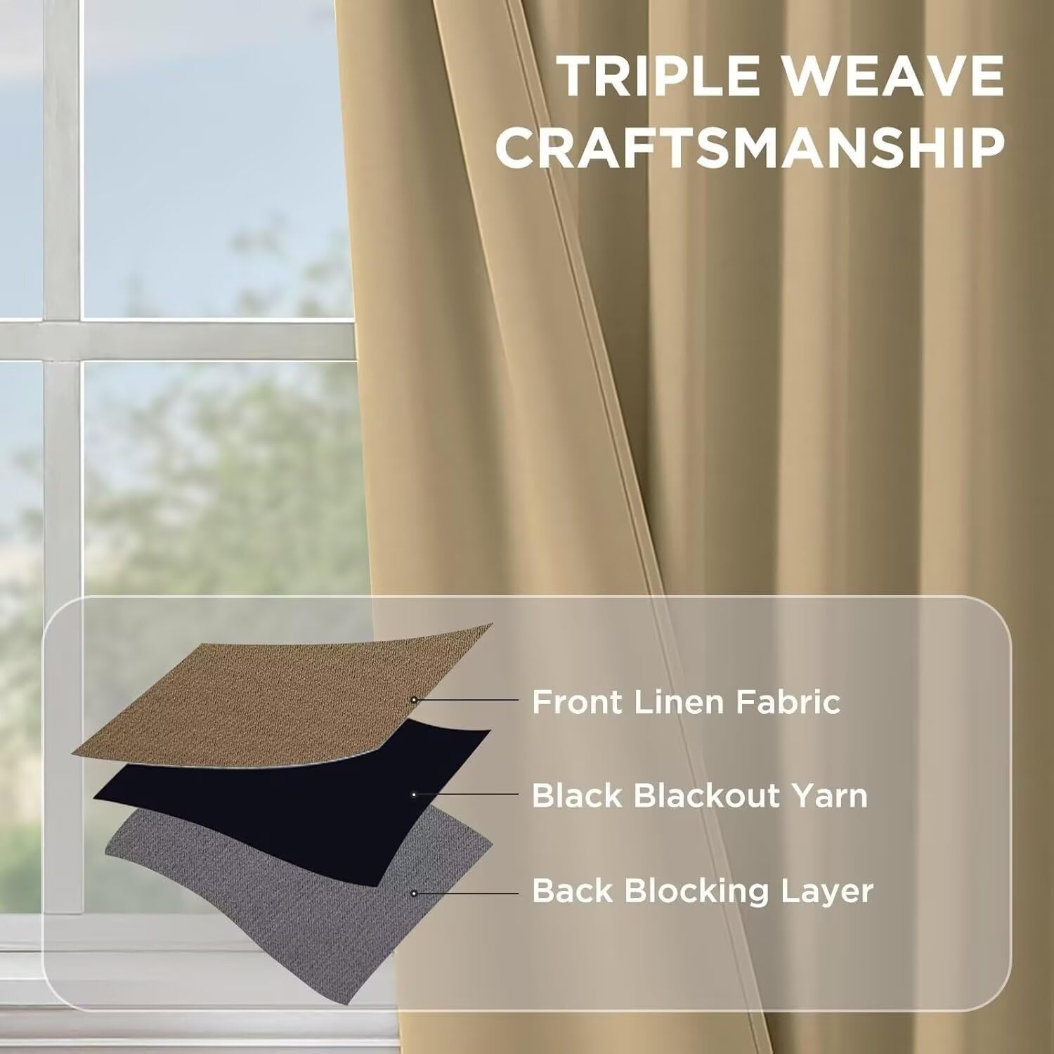 Joydeco White Blackout Curtains 96 Inches Long for Bedroom, Curtains 96 Inch Length 2 Panels Set, Room Darkening Curtains & Drapes for Living Room Window (W52 x L96 Inch, Beige)