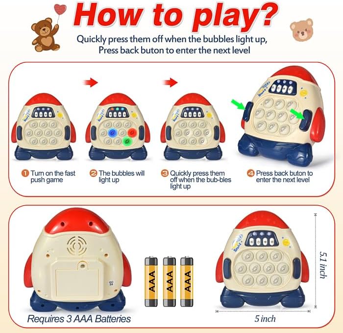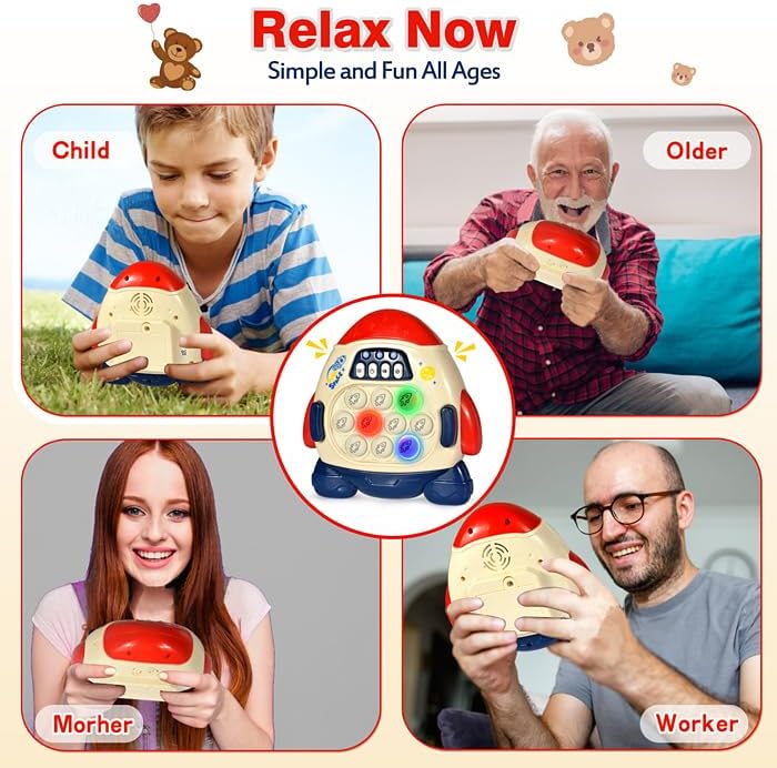 • 【Fast Push Game】 Get ready for endless hours of fun with this pop fidget toy! With multi modes, including single-player challenges and multiplayer showdowns, this handheld fidget toy is perfect for all ages. Simply install then lights up dancing bubble at now!