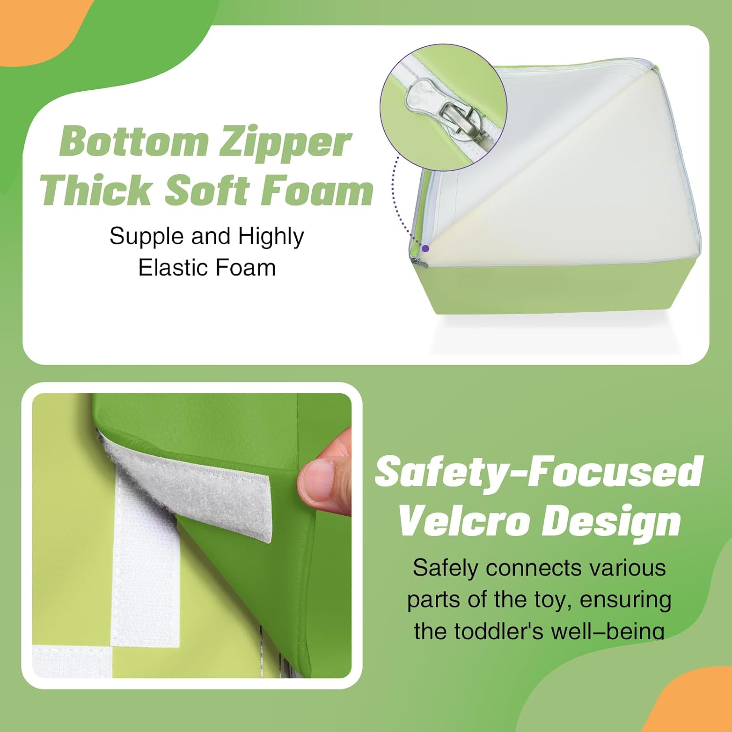 - 6-Piece Set: Baby climbing blocks consists of 1 apricot pink half-moon, 1 blue half-moon,1 orange stair, 1 green stair, 1 grass green square and 1 purple slide. This soft play equipment stimulates your child's imagination to create endless combinations of structures, allowing them to enjoy the fun of the toy as they climb up and down, stacking and swapping four different shapes