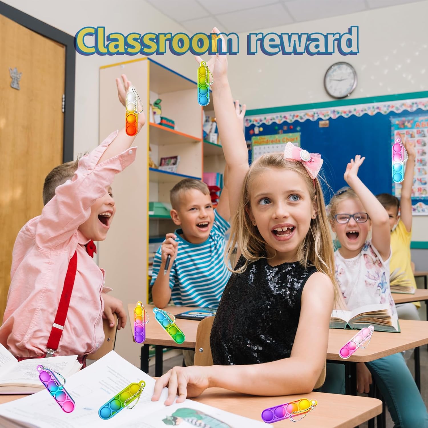 - 【Party Favors for Kids Pinata Stuffers】: Pop keychain pack is widely available in bulk,good choice for birthday party favors for kids 4-8, easter gifts for kids. Pop keychain bulk toys for kids' prizes and goodie bags ensure that there is enough to go around, while also providing a diverse selection of items. For teachers, having a treasure chest full of fidget toys for kids' prizes is a great classroom necessity that preschool classrooms must have .