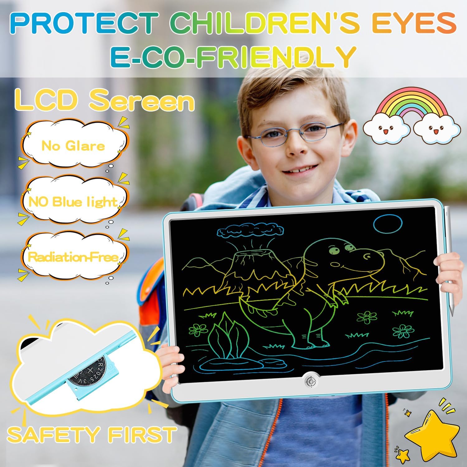 - Durable ,Safe and Eye-Care Friendly: Made from non-toxic ABS material, our wrting board is durable and safe, with an anti-fall and waterproof screen. It's designed to be easy on the eyes, promoting a healthier alternative to electronic devices