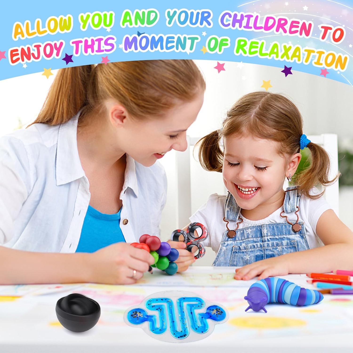 - Toys for Autistic Kids:A box filled with a variety of cool fidget toys to keep kids entertained and help them relieve stress. These adhd toys for kids calm busy hands and brains, so whether you're feeling anxious or bored at work, waiting, they can help