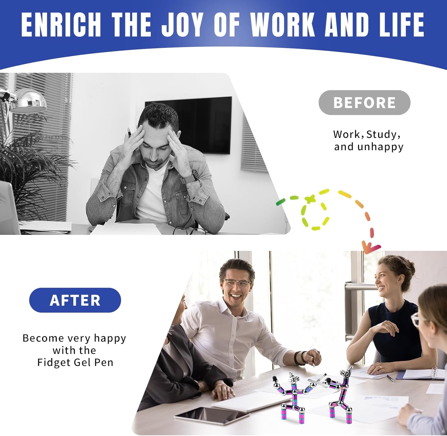 - Boost Mood and Productivity: Amidst the hustle of daily life, these fidget gel pens become your go-to source of joy and inspiration. Unleash your creativity during moments of fatigue or monotony by engaging in playful pen assembling activities, uplifting your spirits and enhancing focus for improved work or study performance.