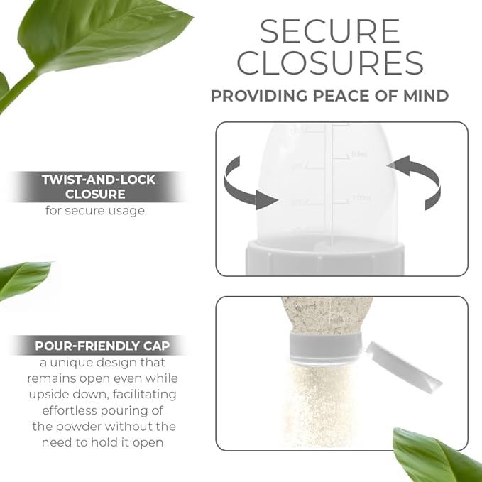 - ✅[Pour-Friendly Cap] The cap features a unique design that remains open even while upside down, facilitating effortless pouring of the powder without the need to hold it open.