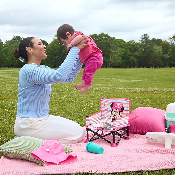 Bright Starts Disney Minnie Mouse Pop 'N Sit Portable Booster, Indoor/Outdoor Use, Floor Seat with Feeding Tray, 6 Mos - 3 Yrs
