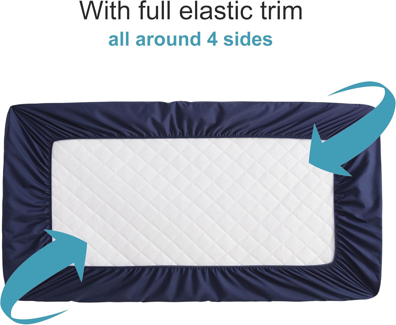 NTBAY 2 Pack Waterproof Mini Crib Mattress Protector, Quilted 24"x38" Fitted Mattress Cover - Machine Washable - Soft and Breathable Baby Mattress Pad Sheet for Mini Crib and Baby Playards, Navy Blue