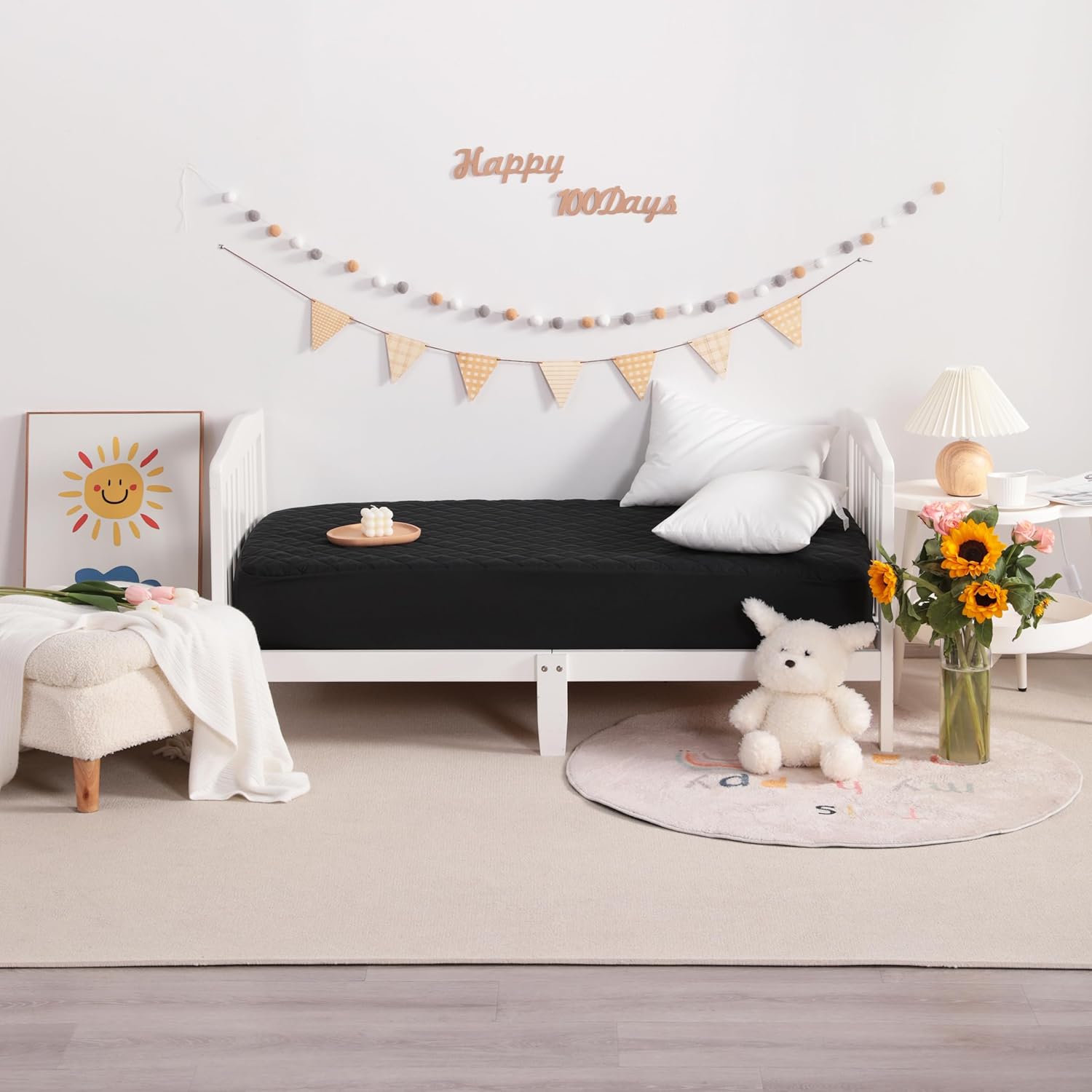 NTBAY 2 Pack Waterproof Crib Mattress Protector, Quilted 28"x52" Toddler Fitted Sheet - Machine Washable - Soft and Breathable Mattress Pad Cover for Crib, Nursery, Daycare, Cot, Black