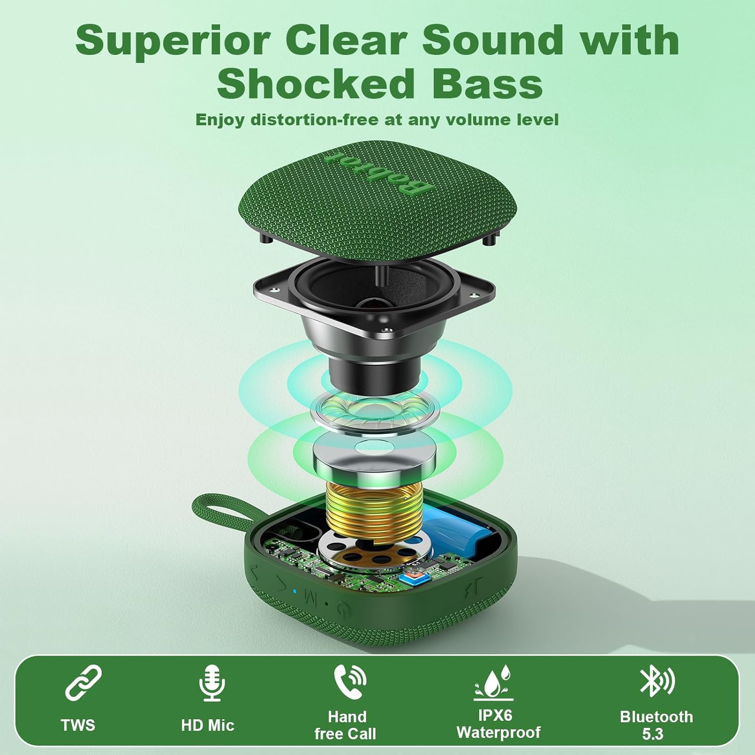 Bobtot Portable Bluetooth Speakers Wireless - IPX7 Waterproof Mini Shower Speaker with 16 Hours Playtime, Loud Stereo Sound, Rich Bass, TWS, Built-in Mic, Small Size for Travel Sport, Green