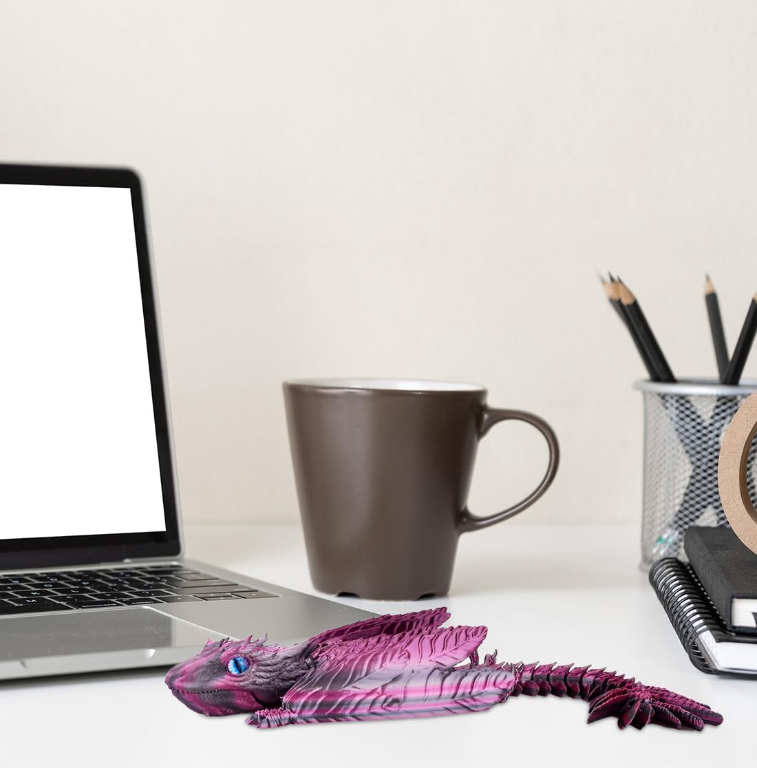 3D Printed Dragon with Wings 3D Printed Animals Articulated Dragon Fidget Dragon 3D Printed Toys Dragon Toy Desk Pets Home Office Decor (Purple)