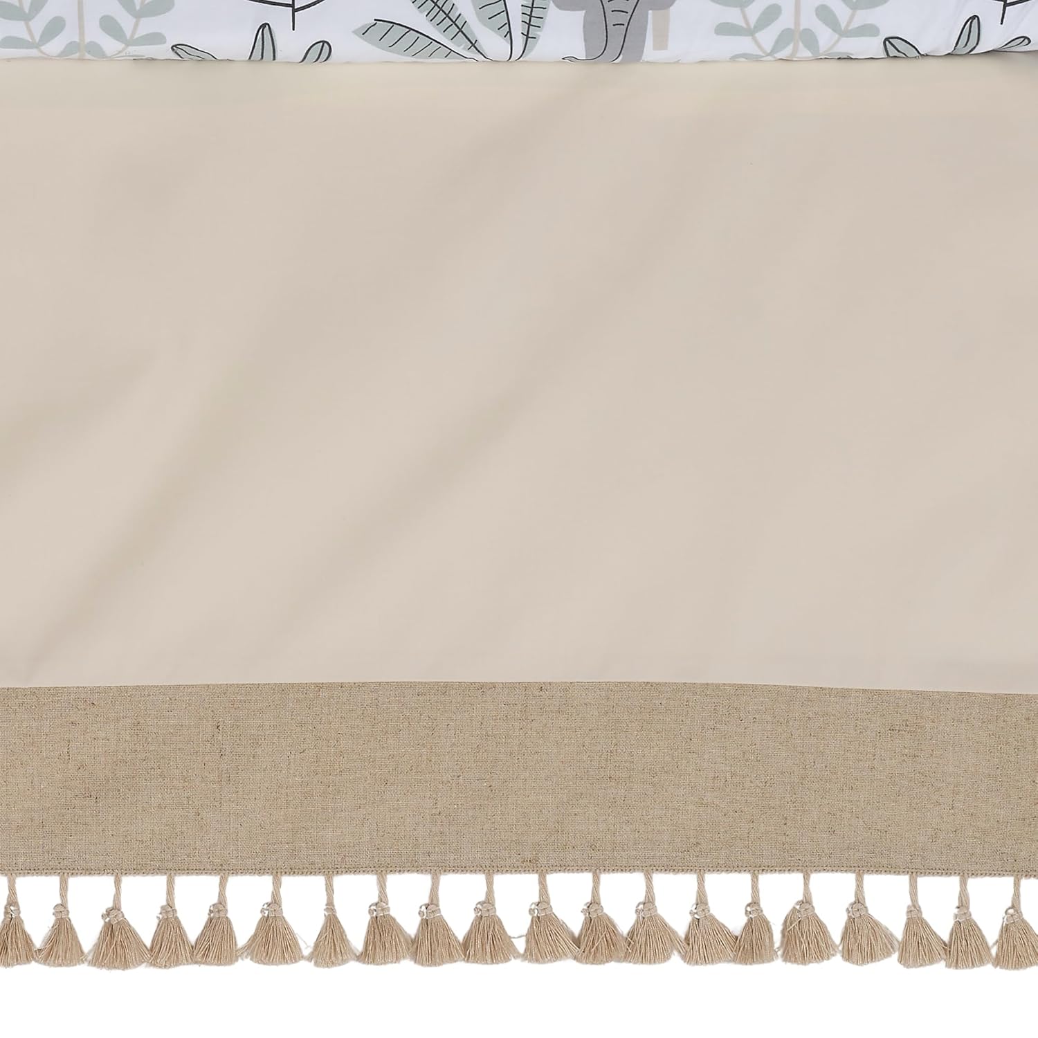 - The decorative crib skirt with tassel trim has 16 inch long drop