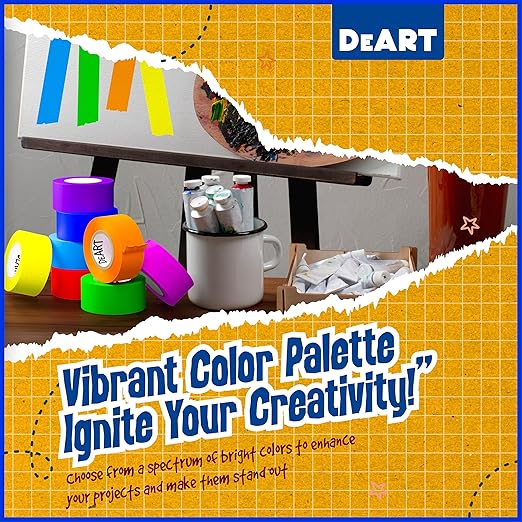 - 🌈 Value Package - Expand your artistic possibilities using vibrant yards of masking tape. Whether you require painter's tape or colored tape, let DEART help you craft something exquisite. 12 x Masking Tapes, Each 11 Yards Long With 0.6 Inch Thickness