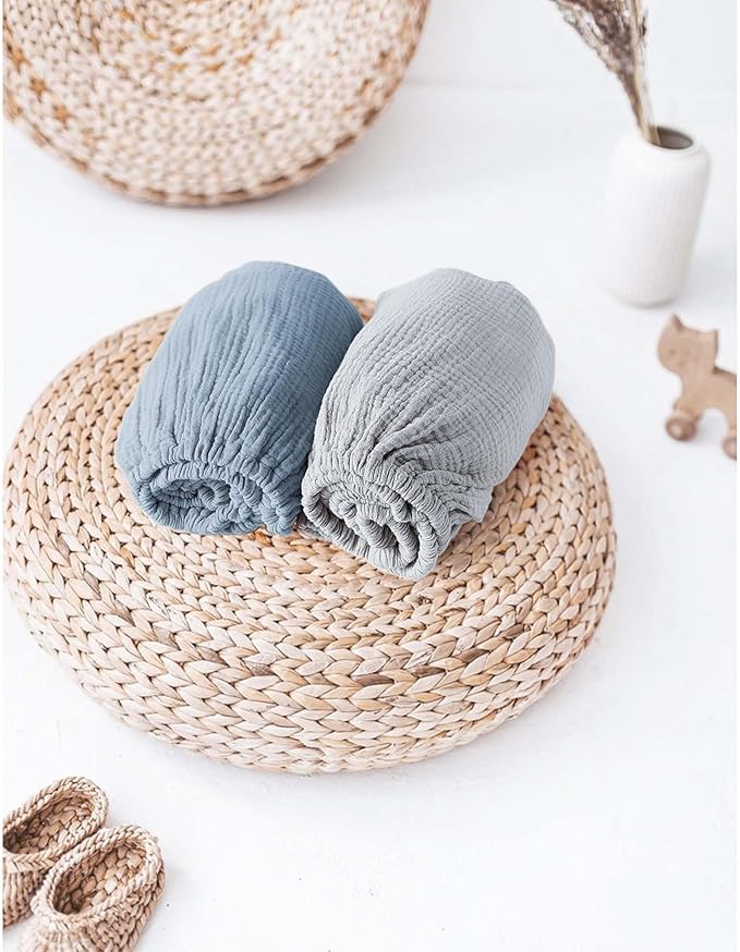 - SOFT and BREATHABLE -- The 100% Muslin Cotton bassinet sheets redefine comfort for your baby. Crafted with luxurious softness and breathability, these sheets create a truly happy sleep experience.