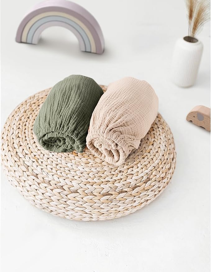 - SOFT and BREATHABLE -- The 100% Muslin Cotton bassinet sheets redefine comfort for your baby. Crafted with luxurious softness and breathability, these sheets create a truly happy sleep experience.