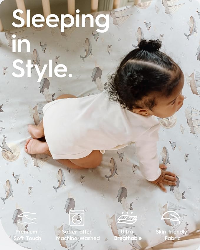 - SKIN-FRIENDLY: Our crib sheets are crafted from ultra-soft, non-toxic, and hypoallergenic jersey rayon cotton, providing a royal treatment for your baby's delicate skin. Say goodbye to rashes and unwanted skin infections!