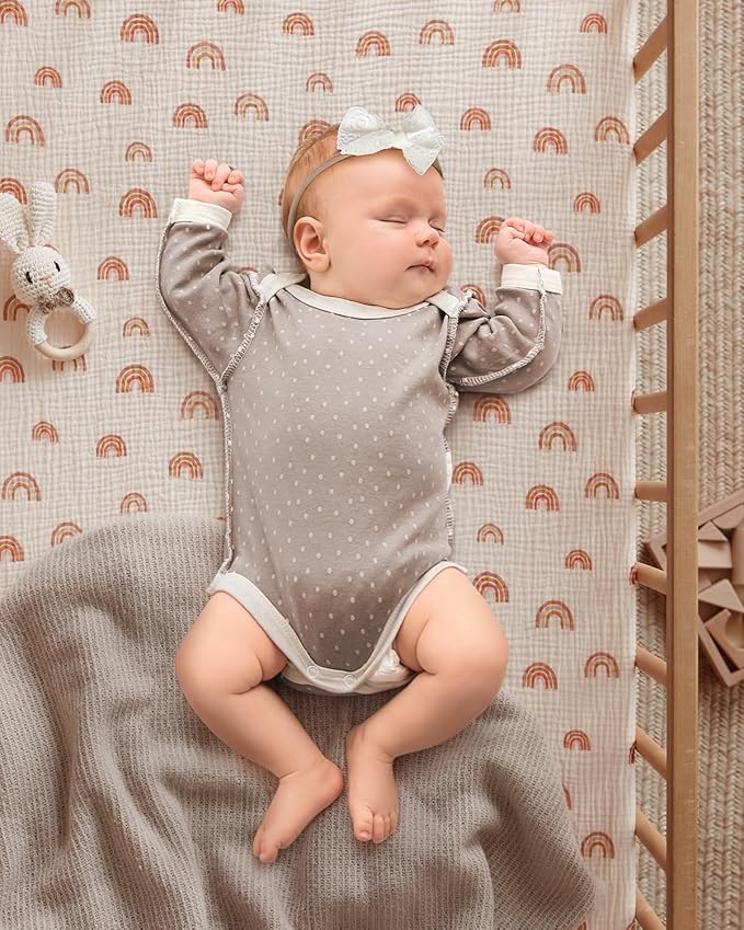 - Premiun Muslin Cotton: Made from muslin cotton, our crib sheets are cozy and breathable in all seasons, making babies a better sleep. Plus, the soft muslin material is friendly for your baby's delicate skin