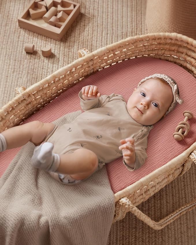 - Premiun Muslin Cotton: Made from muslin cotton, our bassinet sheets are cozy and breathable in all seasons, making babies a better sleep. Plus, the soft muslin material is friendly for your baby's delicate skin
