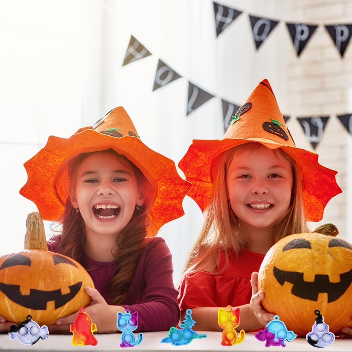 24 Pack Colorful Halloween Mini Fidget Pop Toys Sensory Toys for Kids Boys Girls Halloween Party Favors Halloween Treat Bags Gifts