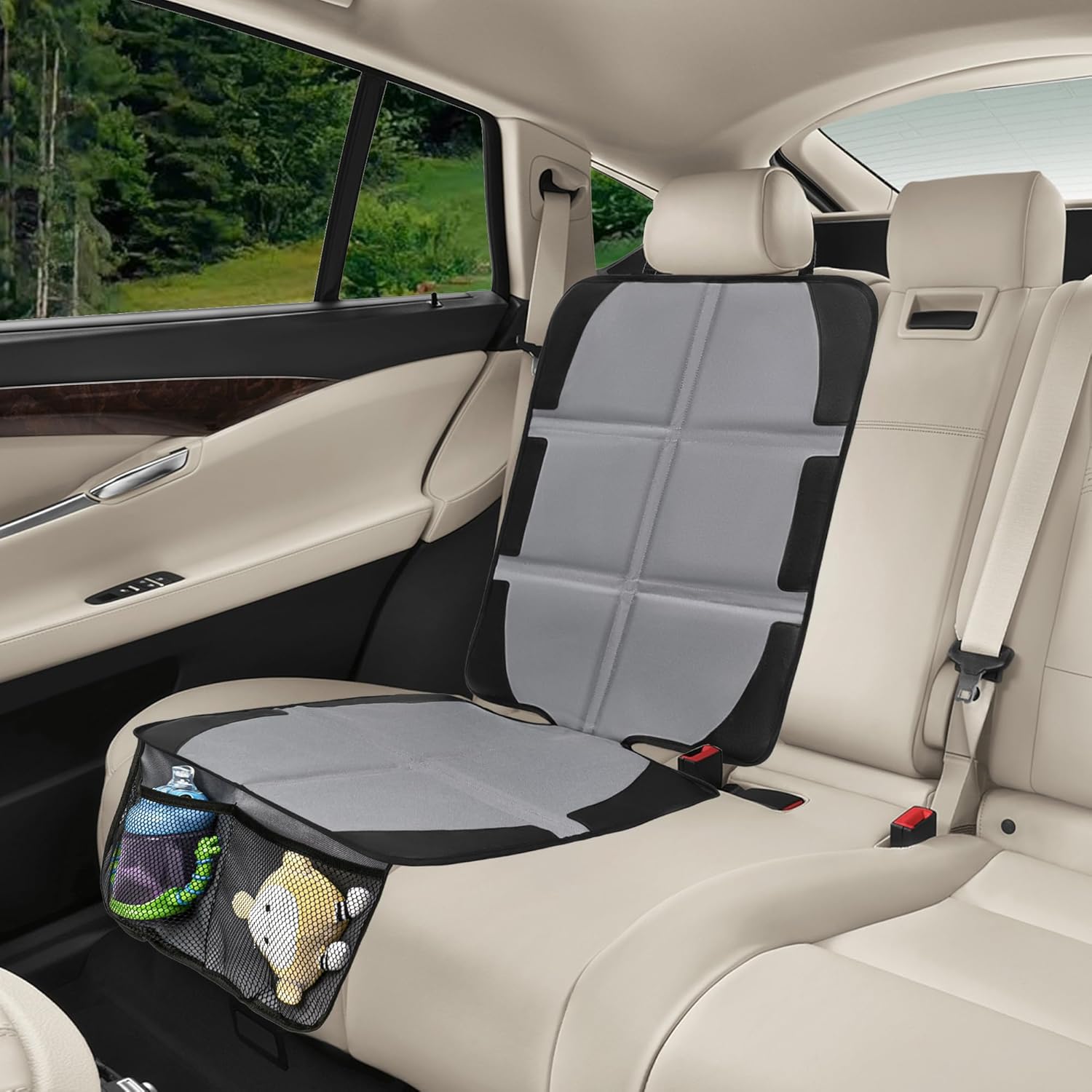 - Car seat protector covers for baby carseat made of waterproof durable 600D polyester with thick padding. Baby car seat cover can protects the back seat of the car from wear and tear of the child seat, make us comfortable while traveling