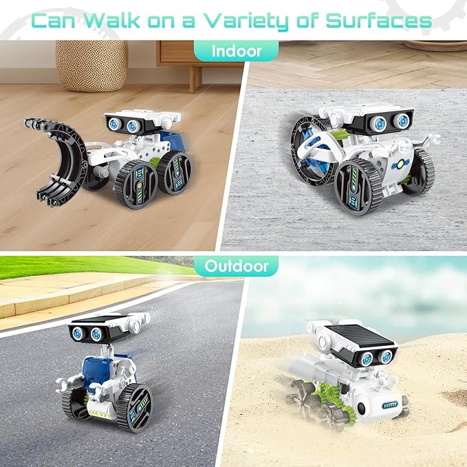 - Ideal Gift for Kids: The solar robot kits will be packaged in a exquisite gift box. The kids toys is an ideal educational gift for you kids on Christmas gifts, birthday gifts, New Year gifts, Easter gifts, Children's Day gifts, holiday gifts and weekend activities. Parents and children enjoy family time and explore the world of science together