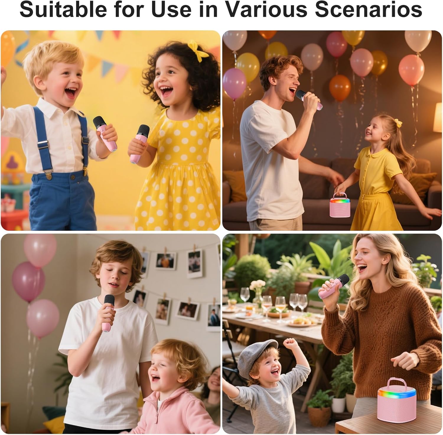 JYX Mini Karaoke Machine for Kids, Portable Bluetooth Karaoke Speaker Unpowered Cabinets with 1 Wireless Microphones and Party Lights for Adults, Birthday Gifts for Girls Boys Family Home Party(Pink)