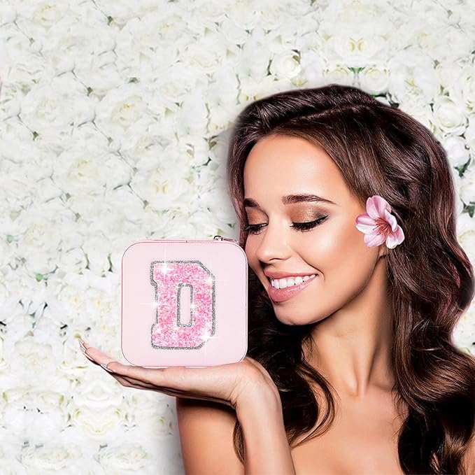 Personalized Jewelry Case for Women Girls - Fashion Mini Jewelry Boxes - Trendy Travel Jewelry Organizer with Initials Letter - Teen Gifts | Pink,D