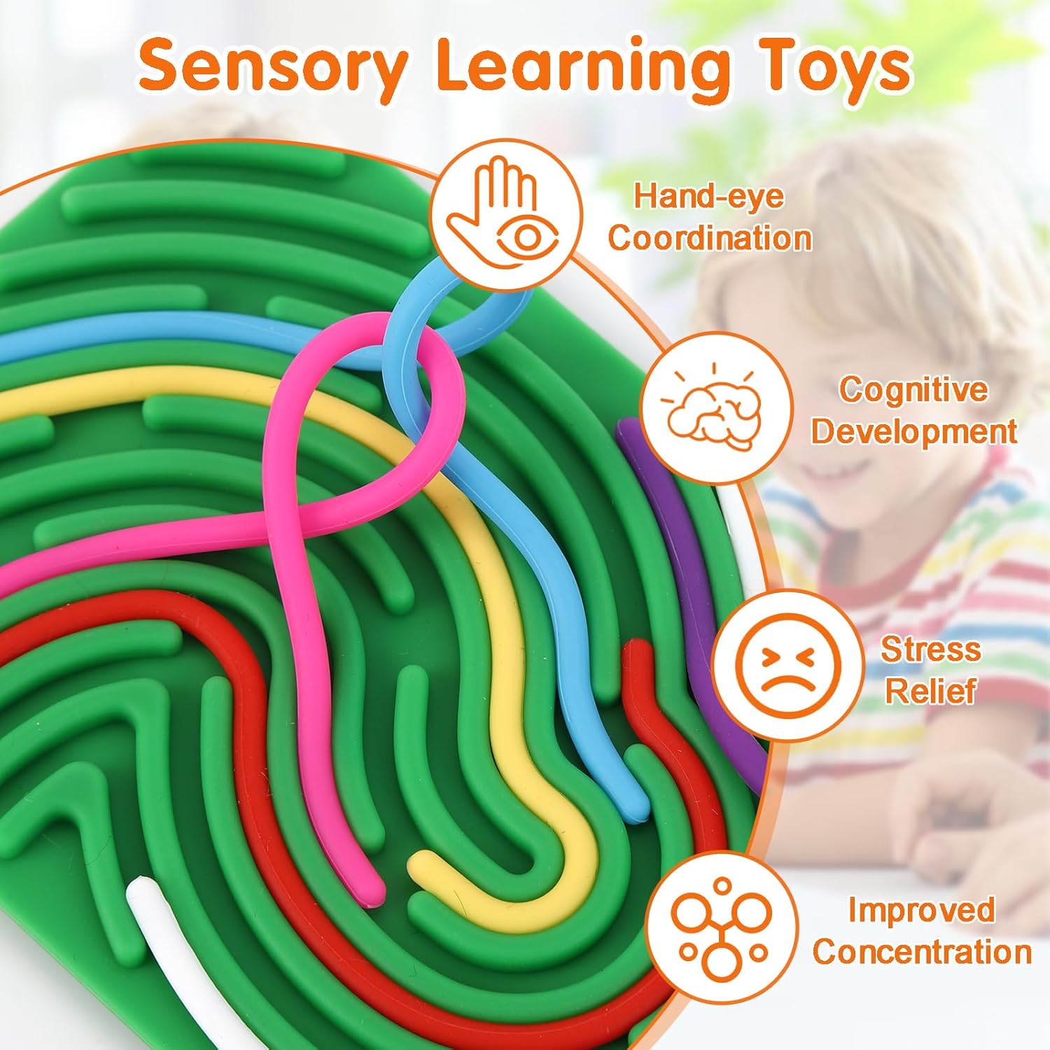- 【Double Sided Busy Board】- With 2 silicone fidget toys and 20 strings. Sensory activity board with double-sided design for more play options, soft-touch, flexible silicone material, hours of fun for kids through pushing, peeling, tying and bridging