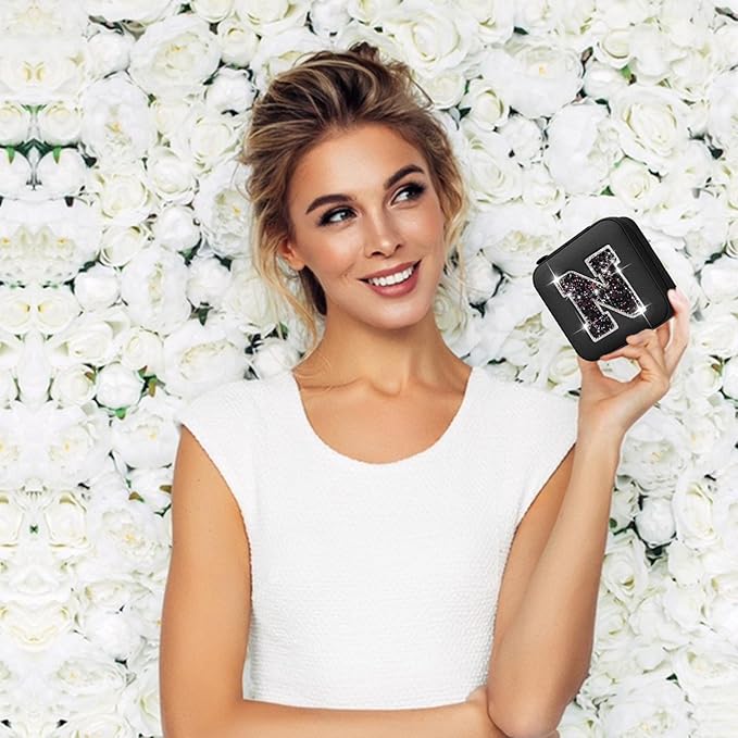 Personalized Jewelry Case for Women Girls - Fashion Mini Jewelry Boxes - Trendy Travel Jewelry Organizer with Initials Letter - Teen Gifts | Black,N
