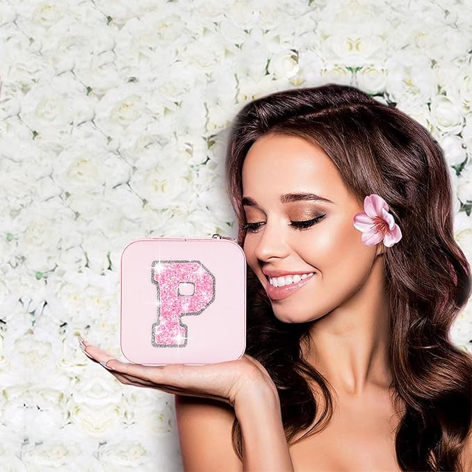 Travel Jewelry Case - Personalized Jewelry Box for Women,Small Jewelry Organizer Cute Jewelry Organizers and Storage Aesthetic,Travel Essentials Birthday Gifts for Girls Women | Pink,P