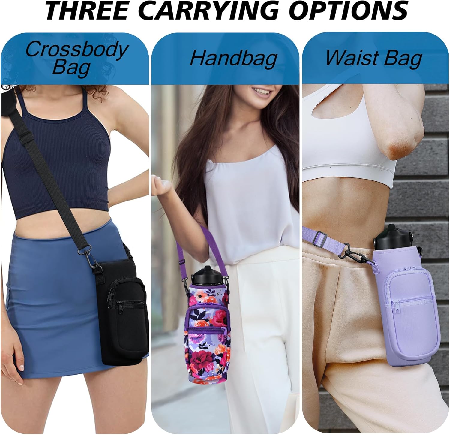 • Premium Material: Made of high-quality 5mm thick neoprene, 30% thicker than others, the water bottle carrier bag is sturdy, soft, elastic and not easy to deform. It prevents scratches and dents on your water bottle, keep the water warm or cold for long-term use.