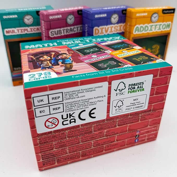 - From 1st to 3rd grade: Includes 4 decks of math flash cards for kids ages 4-8; 52 addition flash cards, 52 subtraction flash cards, 87 multiplication and division flash cards; each card features math facts on the front, solution on the back; 4.5x3 inches