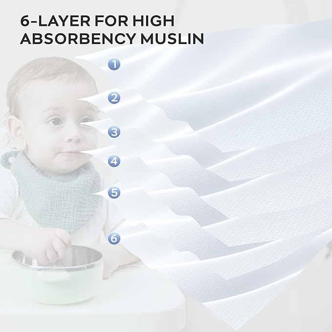 - Highly Absorbent: These bibs for baby girls and boys feature an innovative 6-layer design that is highly absorbent and won't let drool or other liquids soak through the bib, keeping your baby dry all day long
