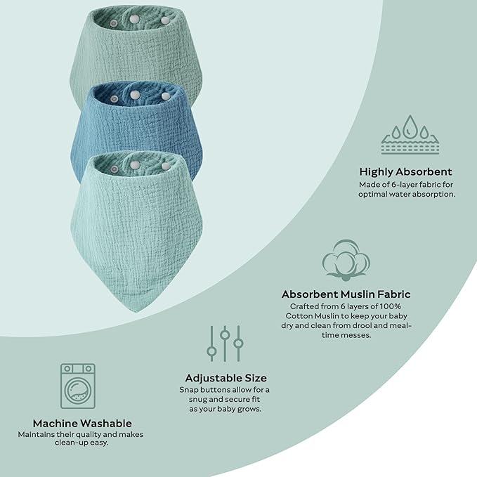 - Muslin Cotton Bandana Drool Bibs: Keep your baby protected from drools and spills with Muslin Cotton Bandana Drool Bibs. Made from 100% Cotton, soft and gentle muslin cotton, these bibs are comfortable and safe for your little one's delicate skin