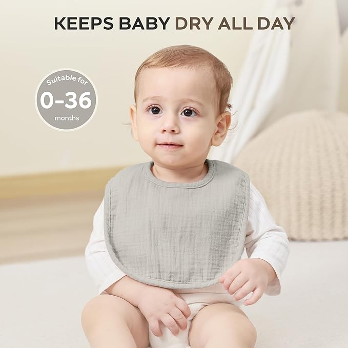 - Highly Absorbent: These bibs for baby girls and boys feature an innovative 6-layer design that is highly absorbent and won't let drool or other liquids soak through the bib, keeping your baby dry all day long