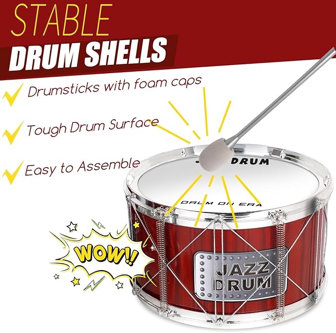 - Musical Learning Toys: The kids jazz drum set is designed to be both entertaining and educational. As the smaller replica of professional drum kit kids, with a versatile design, can inspire the inner musician in your toddler. Boost their attention levels, memory, creative and interactive skills. It is a good set of educational toys for 3 4 5 year old boys girls.