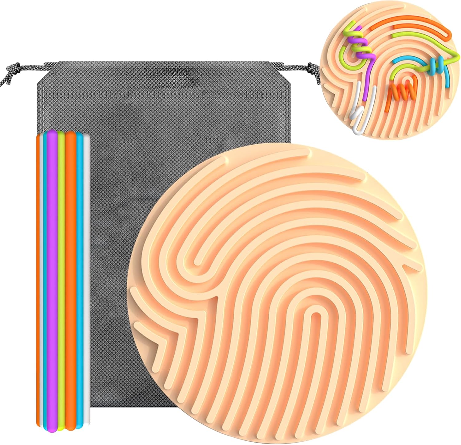 - Convenient to Carry: This sensory activity board is the perfect companion for travel anxiety relief. It comes with an intricate silicone board, 13 colorful strings, and a convenient travel bag. The sensory board measures 16.8x16.8x1.3 cm (6.61x6.61x0.51 inches), and the strings measure 16.5x0.6x0.6 cm (6.50x0.24x0.24 inches), making them easy to carry around and play with