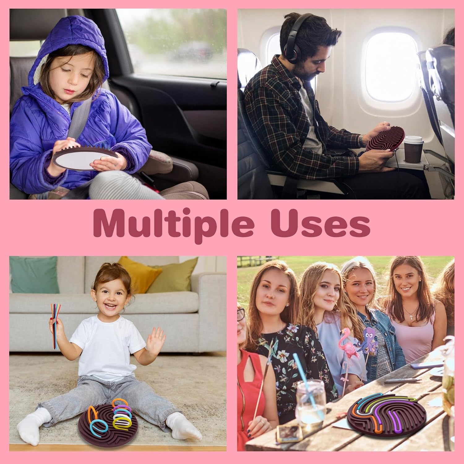 - Help Autism, ADHD, and OCD Patients: This silicone fidget toy helps individuals with autism improve hand-eye coordination, finger dexterity, and fine motor skills. The elements and stimuli on the sensory activity board can stimulate their interest and curiosity. This is an open ended hands-on game that encourages creativity, you can put the silicone string in the grooves in any configuration they want to design different shapes, even loops