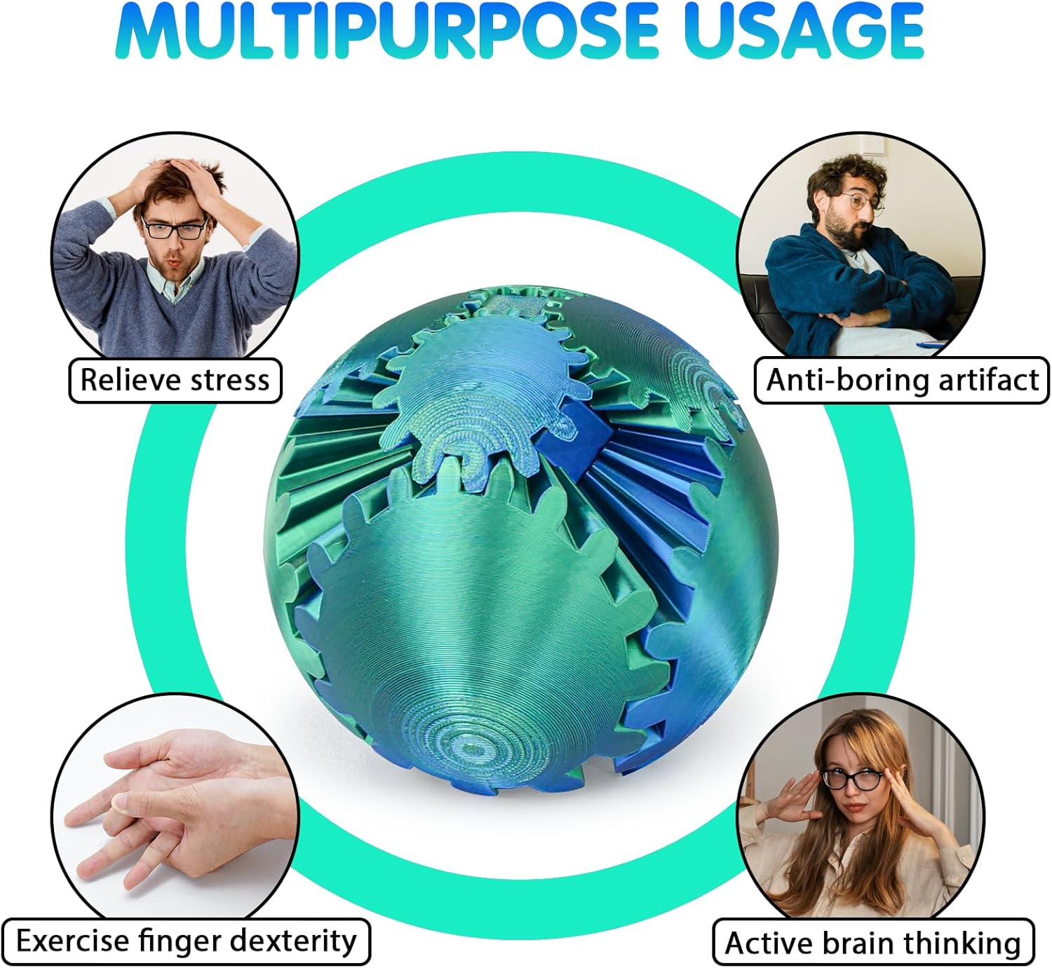 - Stress-Busting Fun - Discover the soothing touch of the Gear Ball, expertly crafted from high-quality, 3D-printed materials. This finger toy's smooth, interlocking gears spin effortlessly, offering tactile pleasure that helps alleviate stress and anxiety for both kids over 6 and adults.