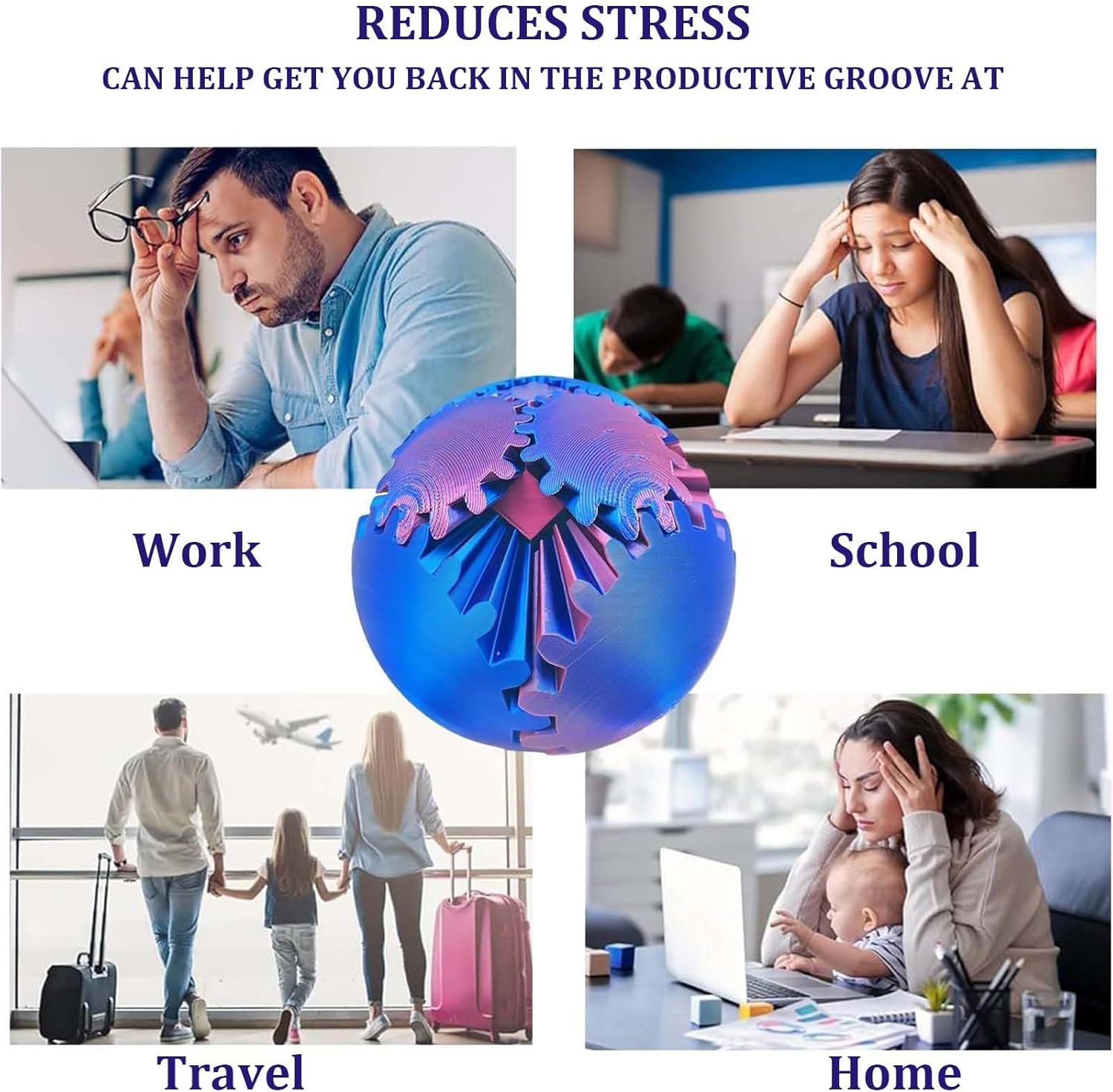 Gear Ball 3D Printed Gear Ball Spin Ball OR Cube Fidget Toy, Gear Sphere, Relieves Stress Anxiety Fidget Toys for ensory Needs and Autism, Gear Ball Fidget Toy