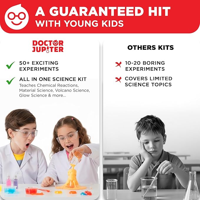 - ✅ THE ULTIMATE SCIENCE KIT: Ignite a passion for kids science with Doctor Jupiter's kit featuring 50+ thrilling science experiments. From color-changing volcanoes to rainbow crystals, kids will feel like real scientists with easy instructions and endless fun.